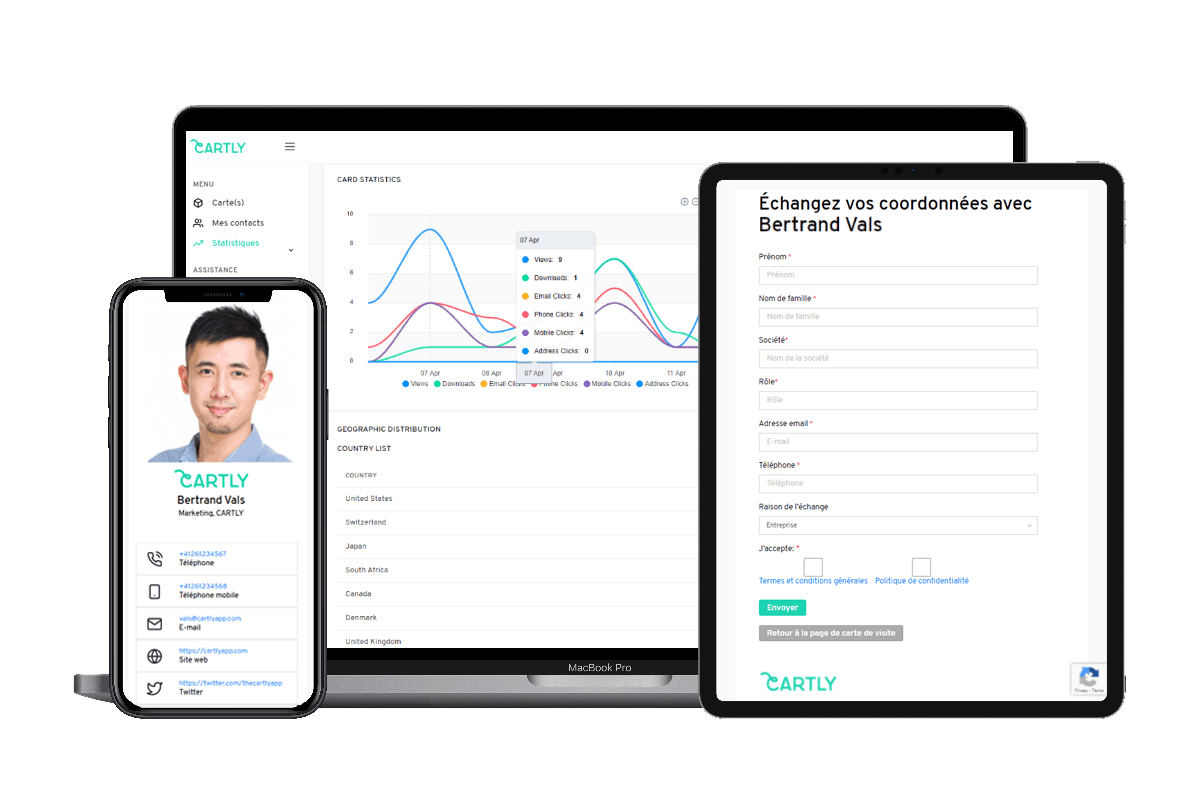 Sie sind auf der Suche nach einer genialen und innovativen Methode, um einen bleibenden ersten Eindruck zu hinterlassen, Ihre digitalen Kanäle zu stärken, Ihre Marke zu vermarkten und Ihre Leistung zu messen? Dann sind die digitalen Visitenkarten von CARTLY die perfekte Lösung für Ihr Unternehmen.