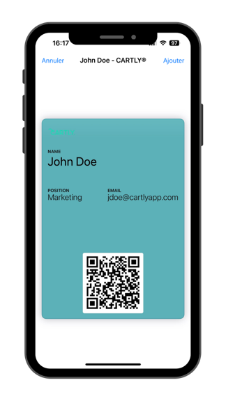Utilisez votre code QR en ligne pour partager votre carte lorsque vous êtes connecté à Internet. Utilisez votre code QR hors ligne pour partager vos informations de contact si vous n’avez pas de connexion.